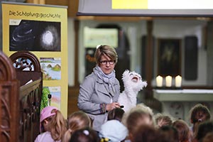 Die Veranstaltung bietet eine unterhaltsame Mischung aus spannenden Geschichten wie der Schöpfungsgeschichte und handfesten Informationen, etwa zum Leben der Nomaden oder zum Fischfang am See Genezareth. Kleine Spieleinlagen beleben die sachlichen Ausführung: so tritt immer wieder das Schaf auf, eine eigens für dieses Buch, von der Hamburger Künstlerin Valérie Bayol geschaffene Klappmaul-Handpuppe. Die zischelnde Schlange und das Nomaden-Zelt (Teppich mit vielen Kissen und orientalischen Gerätschaften) sorgen für anschauliches Lernen.